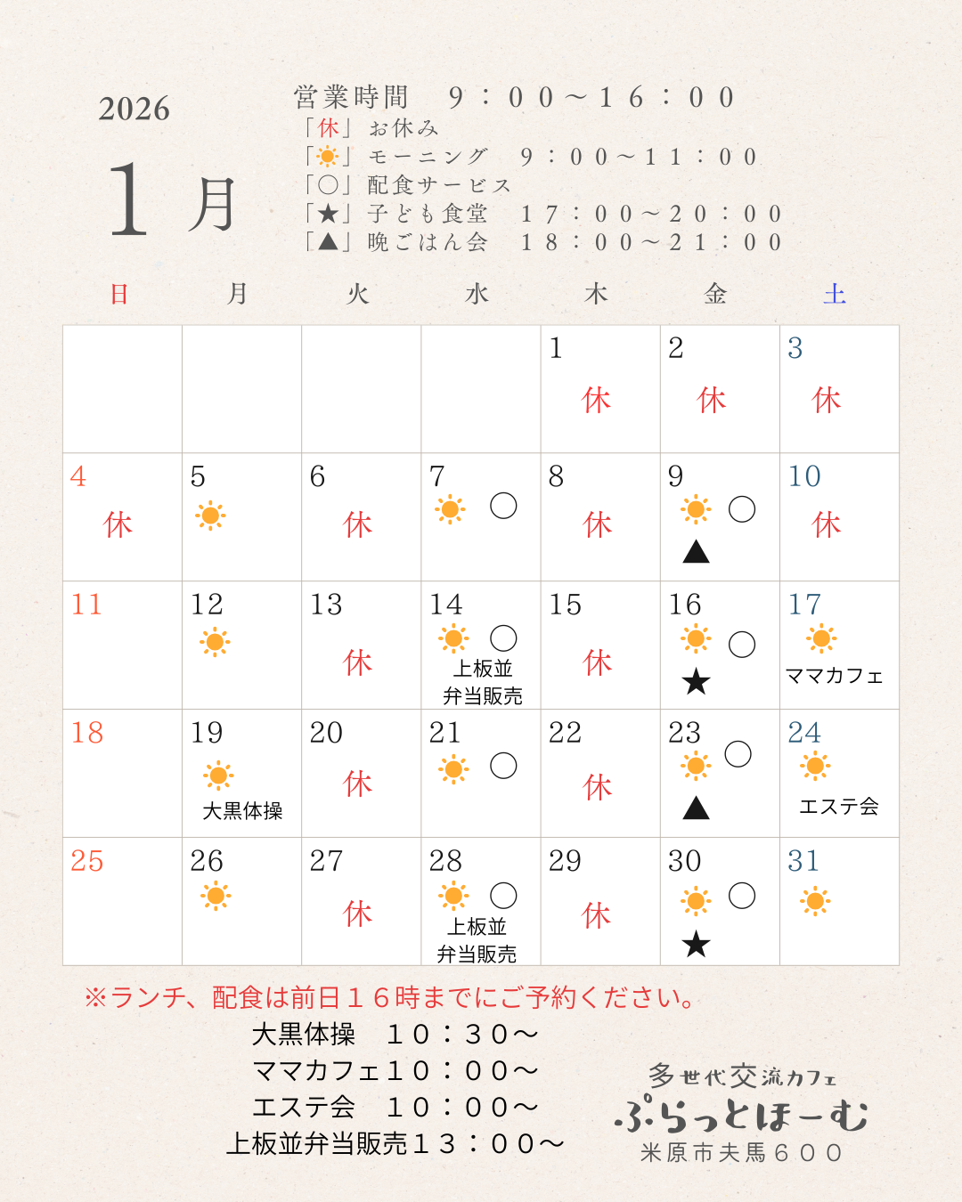 レンタルスペースもあり、地域に根ざした、多世代が集うやさしいカフェです。