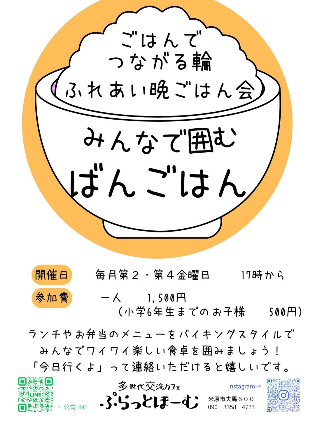 ぷらっとほーむでは、子ども食堂や晩ごはん会、健康体操など、みんなで楽しく過ごせる定期イベントを開催しています。